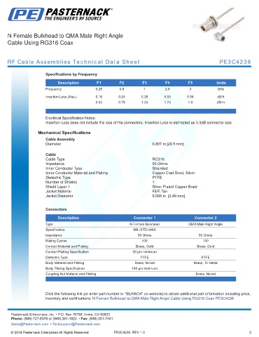 RF Cable Assemblies Technical Data Sheet PE3C4238