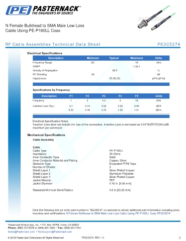 RF Cable Assemblies Technical Data Sheet PE3C5274