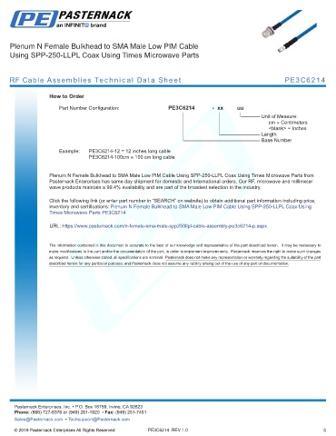 any representation or warranty regarding the suitability of the part described herein for any particular purpose, and Pasternack does not assume any liability arising out of the use of any part or documentation.