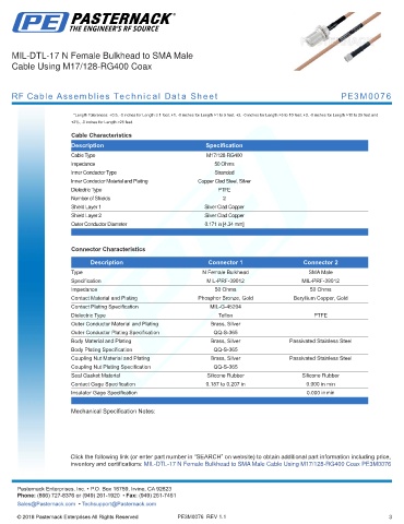 RF Cable Assemblies Technical Data Sheet PE3M0076