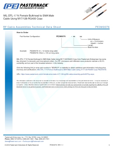 any representation or warranty regarding the suitability of the part described herein for any particular purpose, and Pasternack does not assume any liability arising out of the use of any part or documentation.
