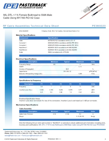 RF Cable Assemblies Technical Data Sheet PE3M0020