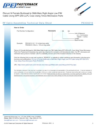 any representation or warranty regarding the suitability of the part described herein for any particular purpose, and Pasternack does not assume any liability arising out of the use of any part or documentation.