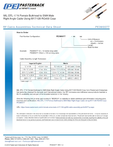 RF Cable Assemblies Technical Data Sheet PE3M0077