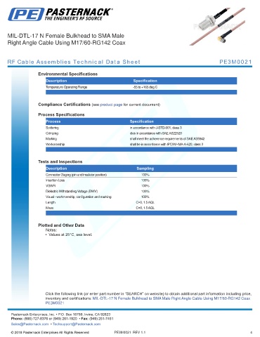 RF Cable Assemblies Technical Data Sheet PE3M0021