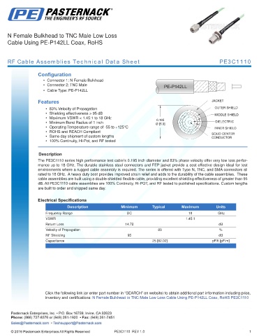 RF Cable Assemblies Technical Data Sheet PE3C1110