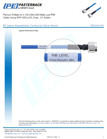RF Cable Assemblies Technical Data Sheet PE3C4140