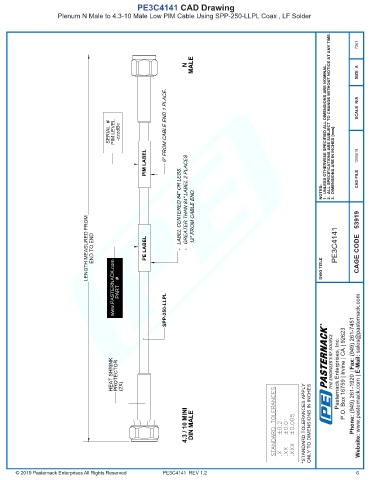 SERIAL # PIM LEVEL -zzzdBc 6" FROM CABLE END 1 PLACE. 1. UNLESS OTHERWISE SPECIFIED ALL DIMENSIONS ARE NOMINAL. 2. ALL SPECIFICATIONS ARE SUBJECT TO CHANGE WITHOUT NOTICE AT ANY TIME. SCALE N/A