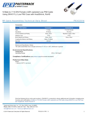RF Cable Assemblies Technical Data Sheet PE3C2014
