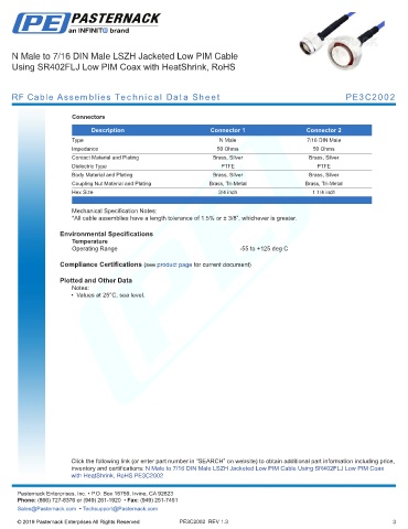 RF Cable Assemblies Technical Data Sheet PE3C2002