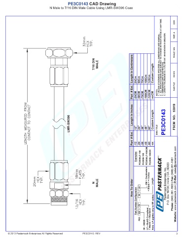 PE3C0143 CAD Drawing N Male to 7/16 DIN Male Cable Using LMR-SW396 Coax © 2013 Pasternack Enterprises All Rights Reserved PE3C0143 REV 3