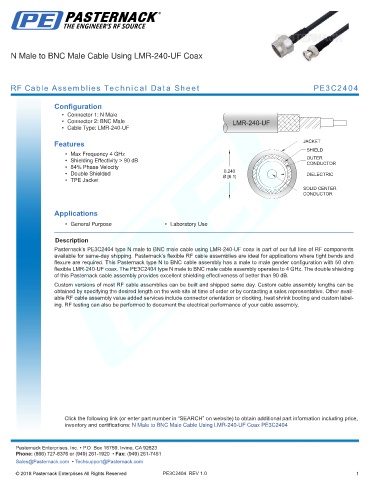 RF Cable Assemblies Technical Data Sheet PE3C2404