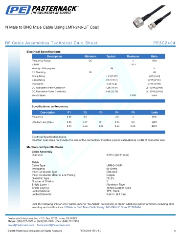 RF Cable Assemblies Technical Data Sheet PE3C2404