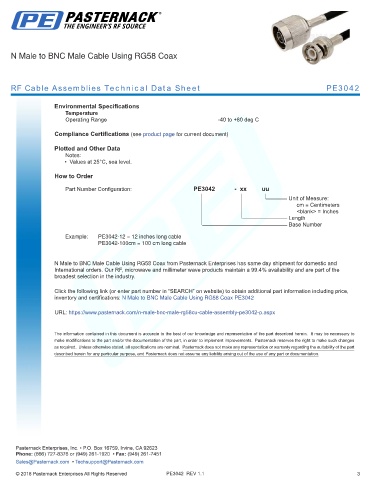 any representation or warranty regarding the suitability of the part described herein for any particular purpose, and Pasternack does not assume any liability arising out of the use of any part or documentation.