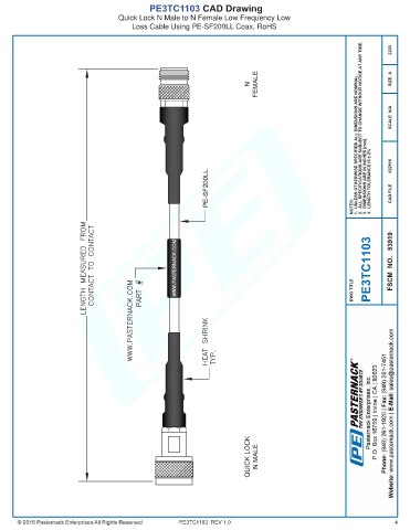 PE3TC1103 CAD Drawing Quick Lock N Male to N Female Low Frequency Low Loss Cable Using PE-SF200LL Coax, RoHS PE3TC1103 REV 1.0 4