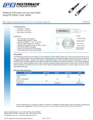 RF Cable Assemblies Technical Data Sheet PE331