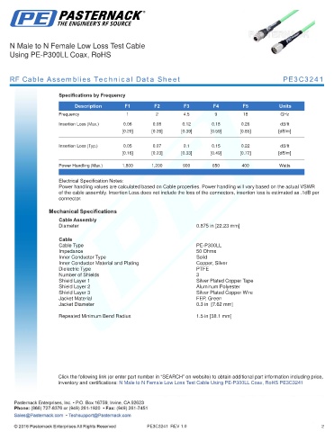 RF Cable Assemblies Technical Data Sheet PE3C3241