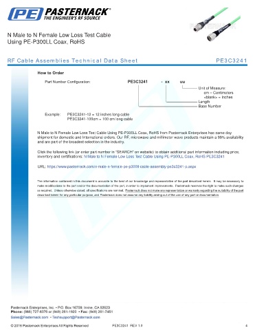 RF Cable Assemblies Technical Data Sheet PE3C3241