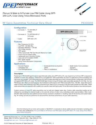 any representation or warranty regarding the suitability of the part described herein for any particular purpose, and Pasternack does not assume any liability arising out of the use of any part or documentation.