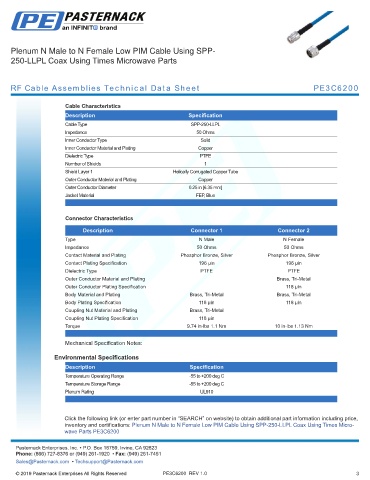 RF Cable Assemblies Technical Data Sheet PE3C6200
