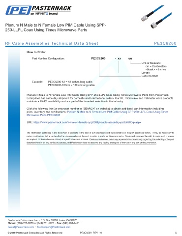 any representation or warranty regarding the suitability of the part described herein for any particular purpose, and Pasternack does not assume any liability arising out of the use of any part or documentation.
