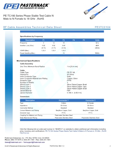 RF Cable Assemblies Technical Data Sheet PE3TC0104