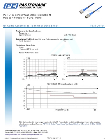 RF Cable Assemblies Technical Data Sheet PE3TC0104