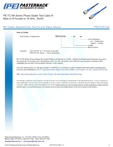 RF Cable Assemblies Technical Data Sheet PE3TC0104