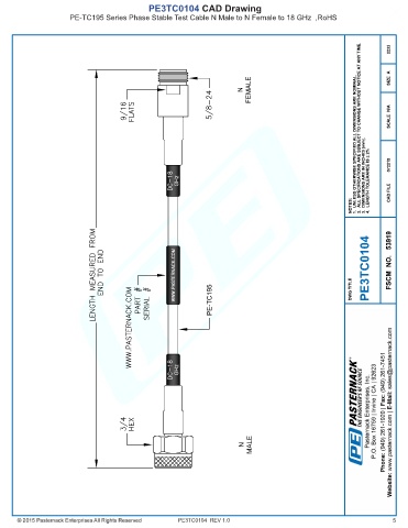 PE3TC0104 CAD Drawing PE-TC195 Series Phase Stable Test Cable N Male to N Female to 18 GHz ,RoHS PE3TC0104 REV 1.0 5