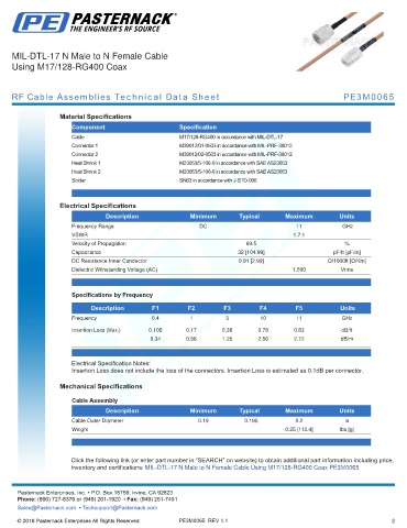 RF Cable Assemblies Technical Data Sheet PE3M0065