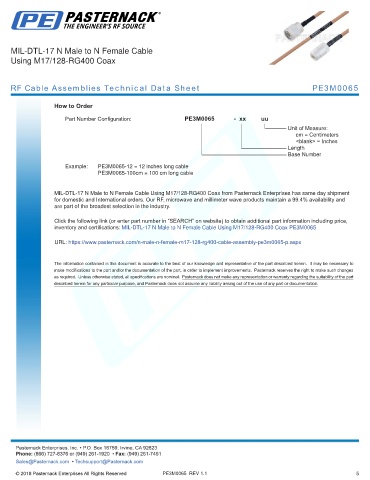 any representation or warranty regarding the suitability of the part described herein for any particular purpose, and Pasternack does not assume any liability arising out of the use of any part or documentation.
