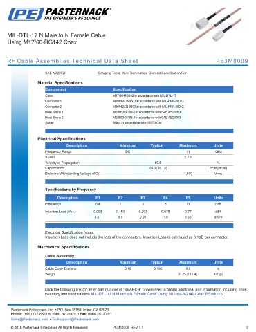 RF Cable Assemblies Technical Data Sheet PE3M0009