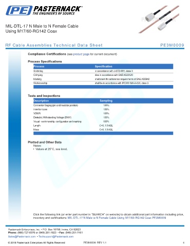 inventory and certifications: MIL-DTL-17 N Male to N Female Cable Using M17/60-RG142 Coax PE3M0009