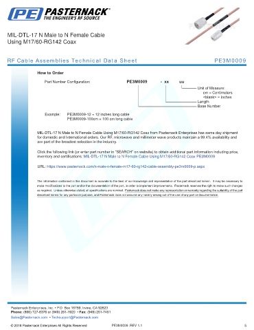 any representation or warranty regarding the suitability of the part described herein for any particular purpose, and Pasternack does not assume any liability arising out of the use of any part or documentation.