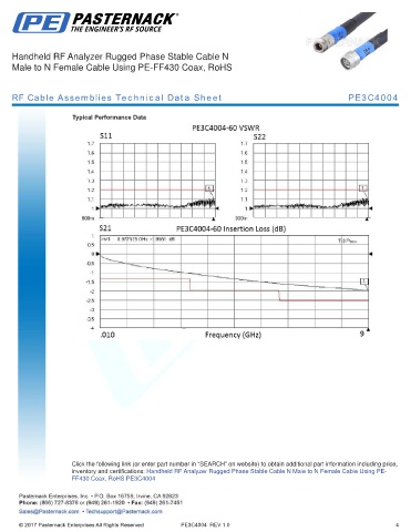 RF Cable Assemblies Technical Data Sheet PE3C4004