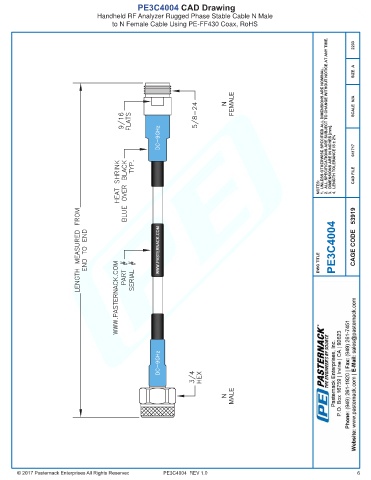 PE3C4004 CAD Drawing Handheld RF Analyzer Rugged Phase Stable Cable N Male to N Female Cable Using PE-FF430 Coax, RoHS PE3C4004 REV 1.0 6