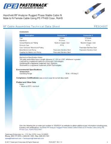 RF Cable Assemblies Technical Data Sheet PE3C4007