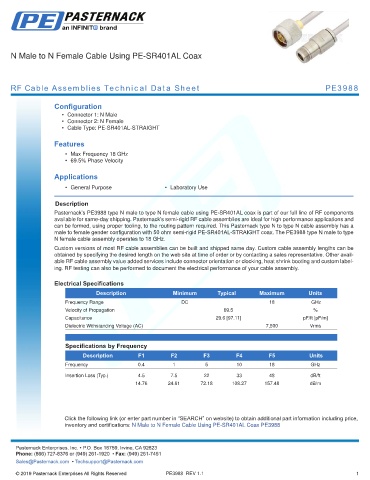 RF Cable Assemblies Technical Data Sheet PE3988