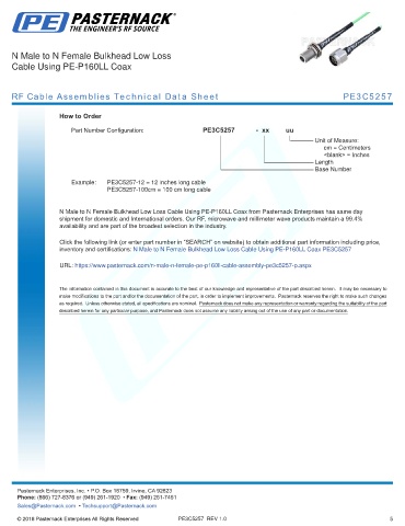 any representation or warranty regarding the suitability of the part described herein for any particular purpose, and Pasternack does not assume any liability arising out of the use of any part or documentation.