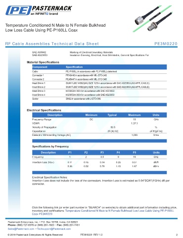 RF Cable Assemblies Technical Data Sheet PE3M0220