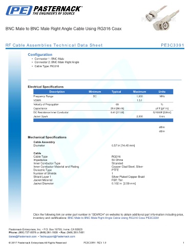 RF Cable Assemblies Technical Data Sheet PE3C3391