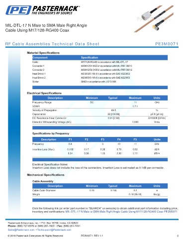 RF Cable Assemblies Technical Data Sheet PE3M0071
