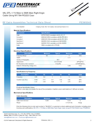 RF Cable Assemblies Technical Data Sheet PE3M0043