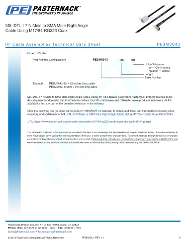 any representation or warranty regarding the suitability of the part described herein for any particular purpose, and Pasternack does not assume any liability arising out of the use of any part or documentation.