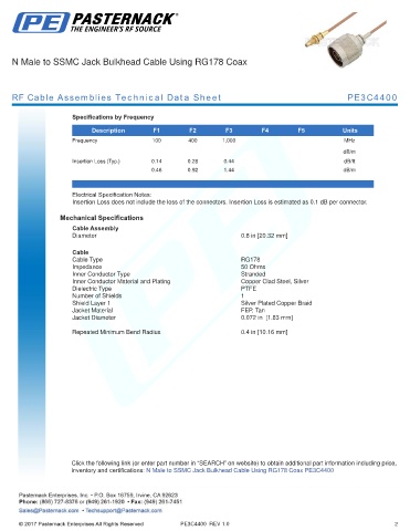 RF Cable Assemblies Technical Data Sheet PE3C4400