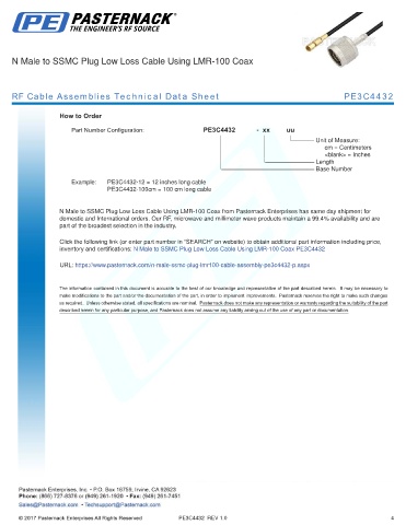 RF Cable Assemblies Technical Data Sheet PE3C4432