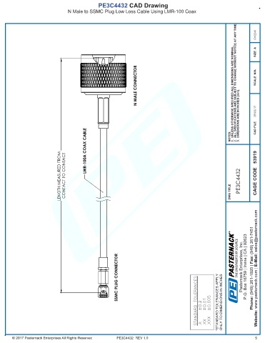 LENGTH MEASURED FROM CONTACT TO CONTACT LMR-100A COAX CABLE NOTES: DWG TITLE 1. 2. 3. PE3C4432 CAGE CODE 53919