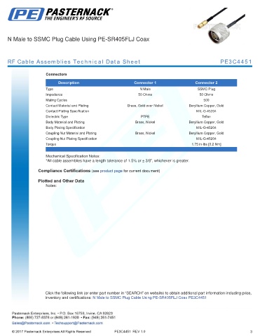 inventory and certifications: N Male to SSMC Plug Cable Using PE-SR405FLJ Coax PE3C4451