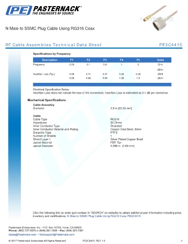 RF Cable Assemblies Technical Data Sheet PE3C4415