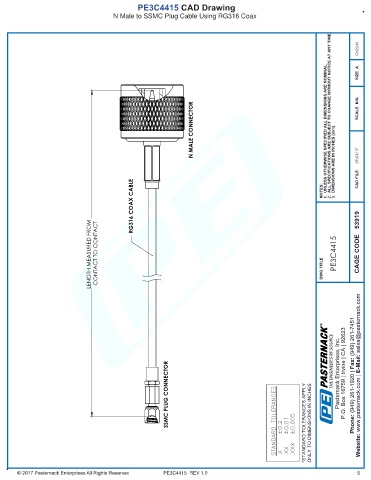 SSMC PLUG CONNECTOR STANDARD TOLERANCES *STANDARD TOLERANCES APPLY ONLY TO DIMENSIONS IN INCHES THE ENGINEER'S RF SOURCE Pasternack Enterprises, Inc. P.O. Box 16759 | Irvine | CA | 92623 Phone: (949) 261-1920 | Fax: (949) 261-7451 Website: www.pasternack.com | E-Mail: sales@pasternack.com